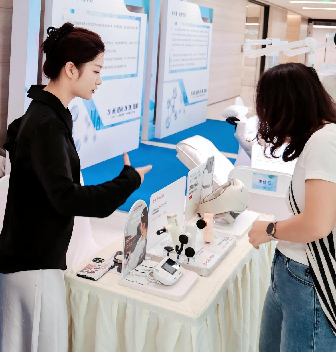 作为一家集研发、生产、销售及服务于一体的智能康复理疗设备制造商,倍益康积极响应,携理疗机器人、筋膜枪、手持式中频电疗仪、肩颈按摩器等产品参与此次活动,通过现场展示与互动体验,让女职工直观感受理疗康复科技带来的舒适与放松。